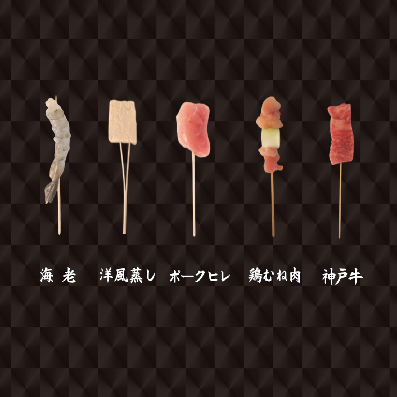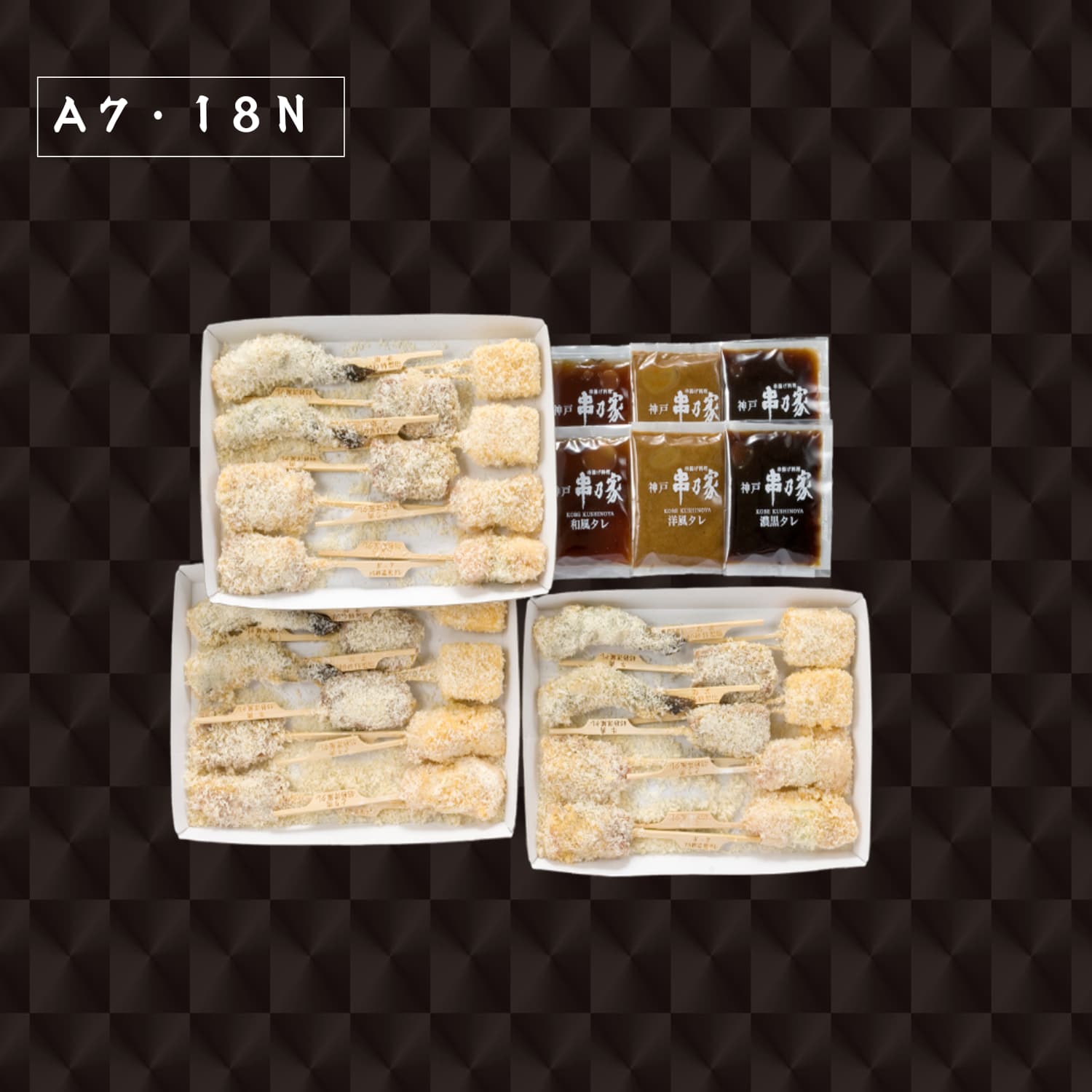 神戸串乃家本店、デパ地下各店で人気のある串5種を特製3種タレと共にご用意致しました。